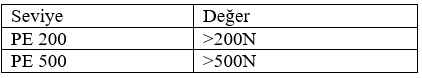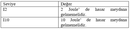 • Darbe dayanımı değerleri Tablo 2’de verilen değerlerden küçük olmaması gerekir.